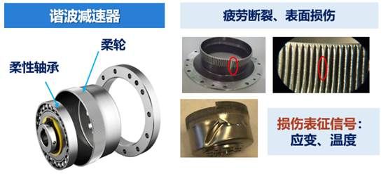 目前针对谐波减速器的识别与监测主要通过外部传感器,获取的信号以振动、噪声、温度为主,获取的状态信息有限。由于谐波减速器内部结构紧凑,传感器布置与信号传输难;各零件间作用关系、力/变形/间隙等耦合关系复杂,状态特征辨识难度高,造成柔轮内部薄弱环节应力、应变、磨损等状态信息的获取缺乏有效手段,严重制约了谐波减速器的智能运维与故障诊断技术的发展。