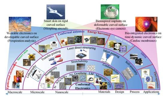 曲面电子是指将无机或有机材料沉积到曲面基板上面,形成具有响应功能的电子器件,实现电子器件和曲面基板共形,从而催生出很多新的应用领域。